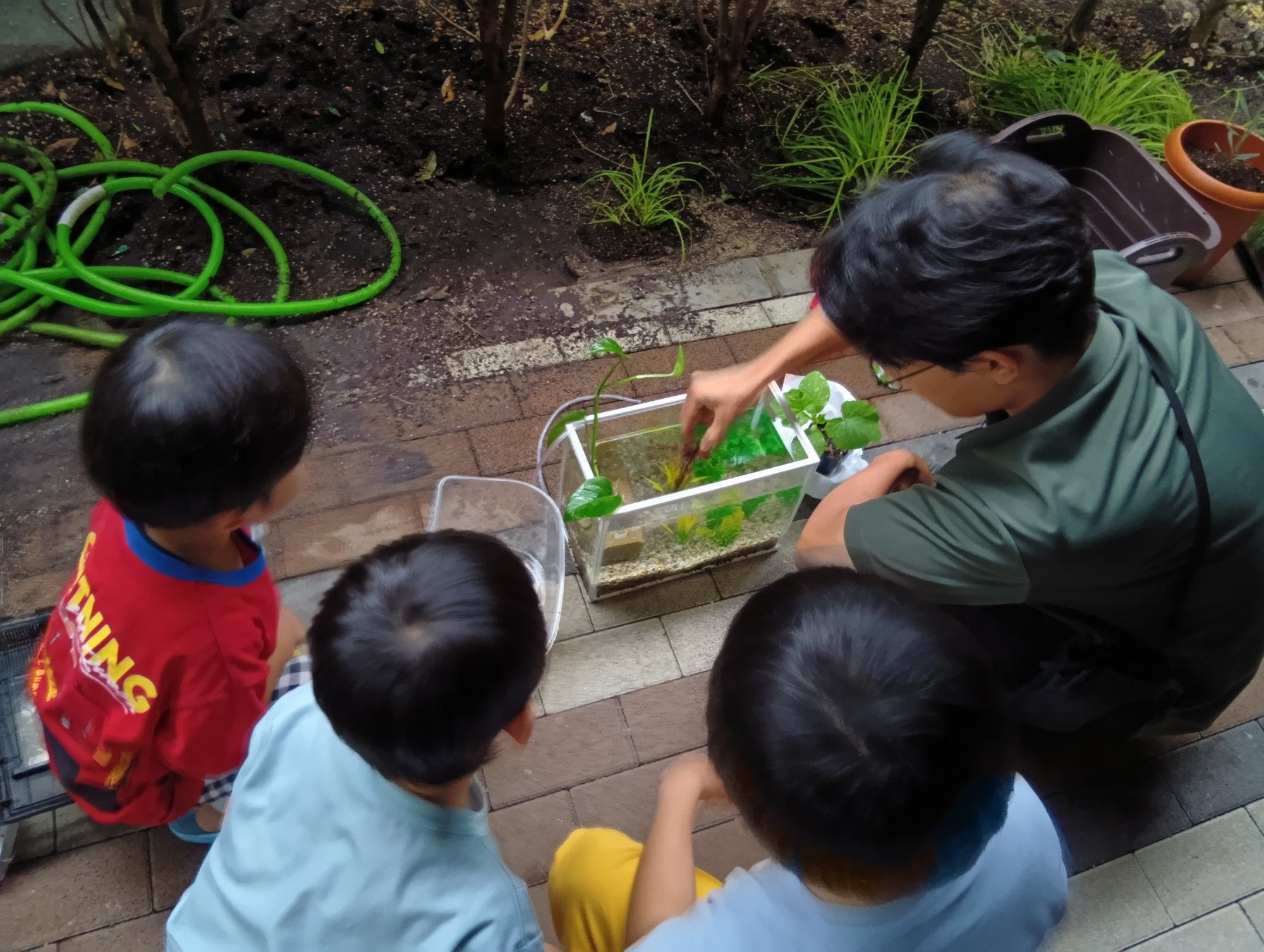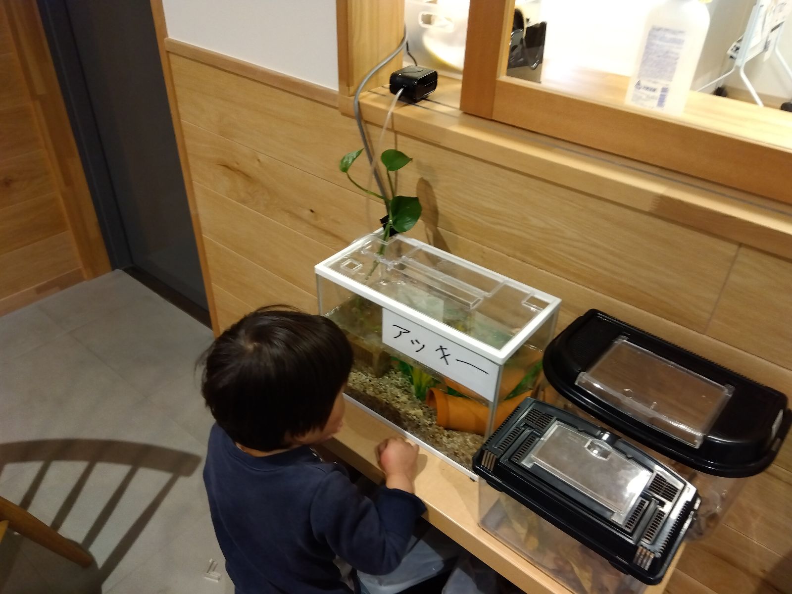 ある日、小学1年生のA君がゆっくりザリガニの動いている事に疑問を持ち、スタッフに質問しました。ザリガニは夏の生き物という事、暑い日が得意という事を聞き、そこから「秋が好きだから!」という思いを込めて「アッキー」という名前を考えてくれました。別のスタッフが「A君は秋が好きなんだね」と尋ねると「違うよ。アッキーが秋が好きなの。秋は元気だから!」と教えてくれました。すっかりA君の好きな季節だと思い込んでいたスタッフでしたが、「相手の事を考える」という視点の成長を感じました。