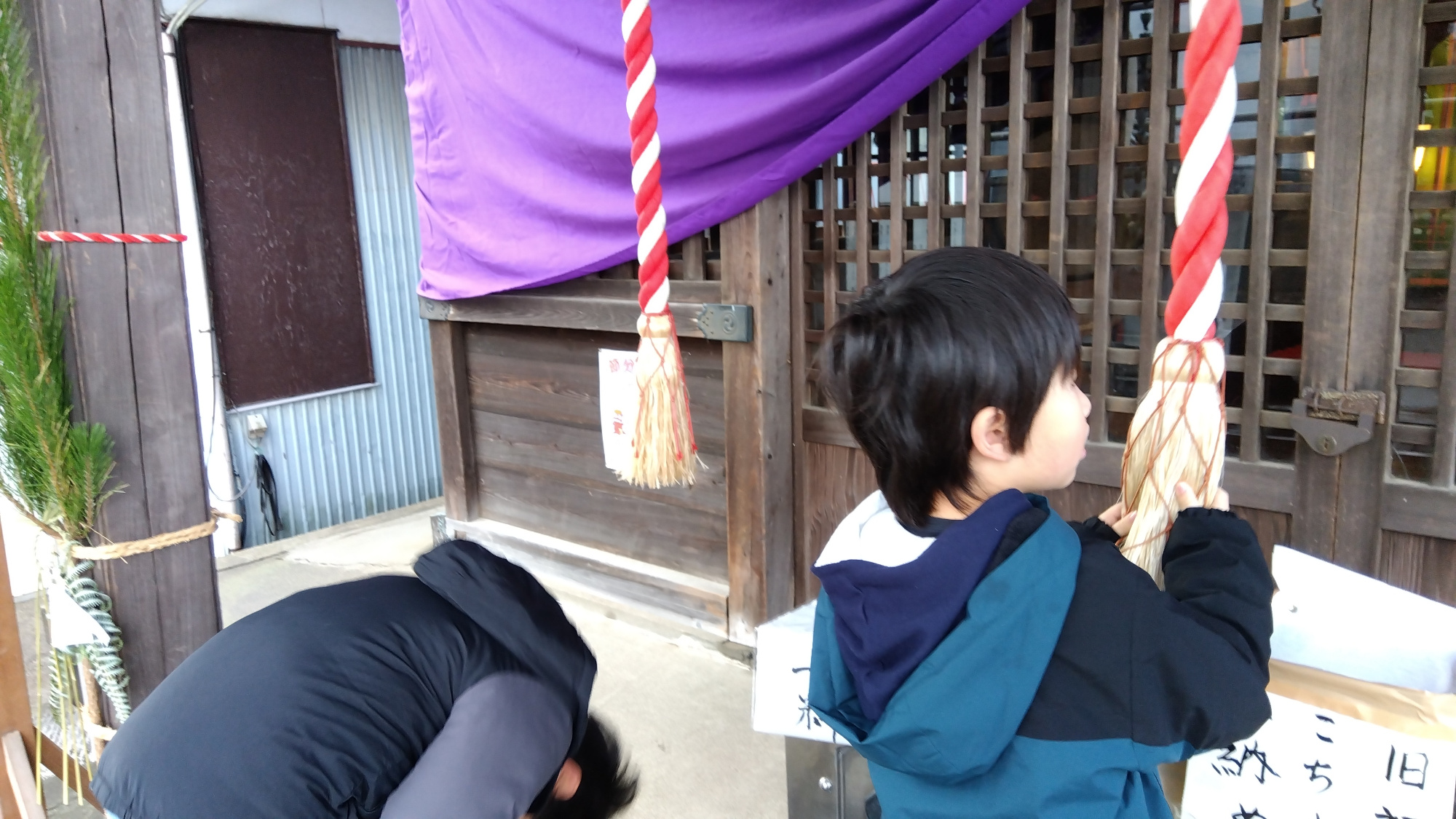 地域の方の後ろに並んで、順番を待ちます。お賽銭を入れて…鈴を鳴らして…二礼二拍手一礼。