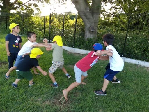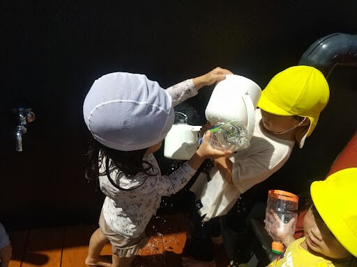 夏と言えば水遊びですが、こちらの場面でも周囲にいる友だちと協力しながら豊かな発想が育まれています。