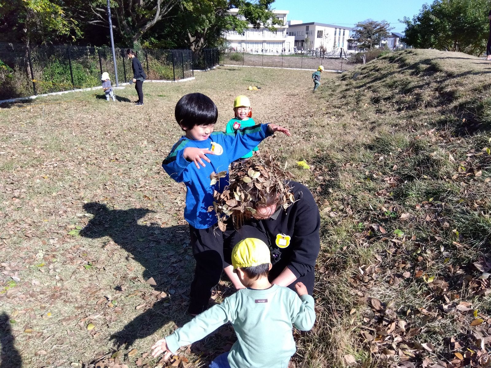 大人が何気なく掃除してしまう落ち葉も、子どもたちならではの視点で、音や感触、色の変化などを楽しみながら遊ぶことが楽しそうです。
