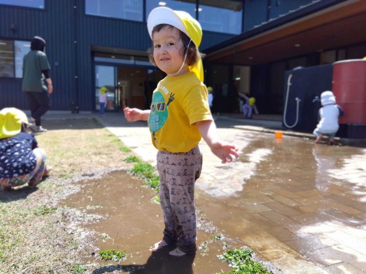 園庭では、水遊びや泥んこ遊びも始まり、子どもたちは全身で自然を感じ、豊かな感性を育んでいます。