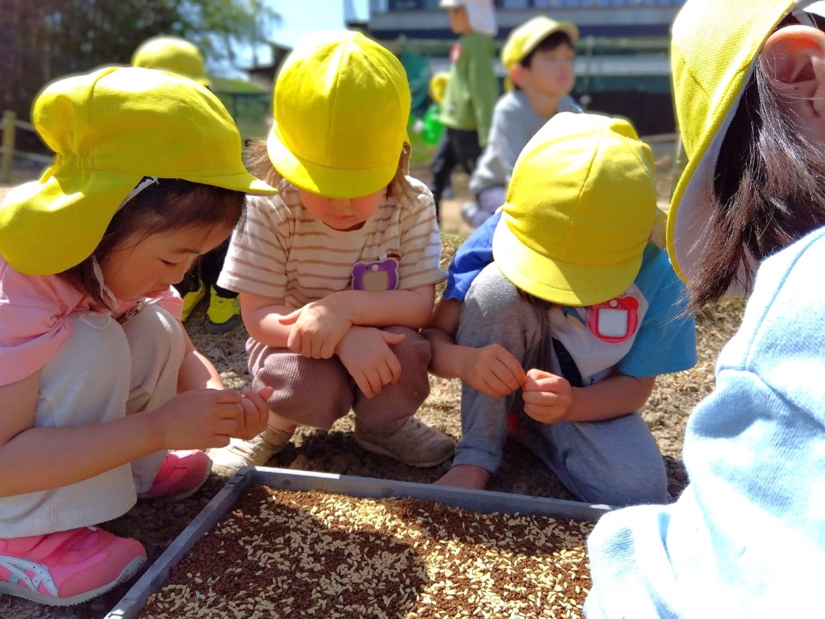 5月の田植えに向けた準備も着々と進んでいます。子どもたちは種もみを体験し、力強い稲を育てるための大切な第一歩を踏み出しました。これから園庭の田んぼに水が張られ、これから始まる田植えへの期待が高まります。