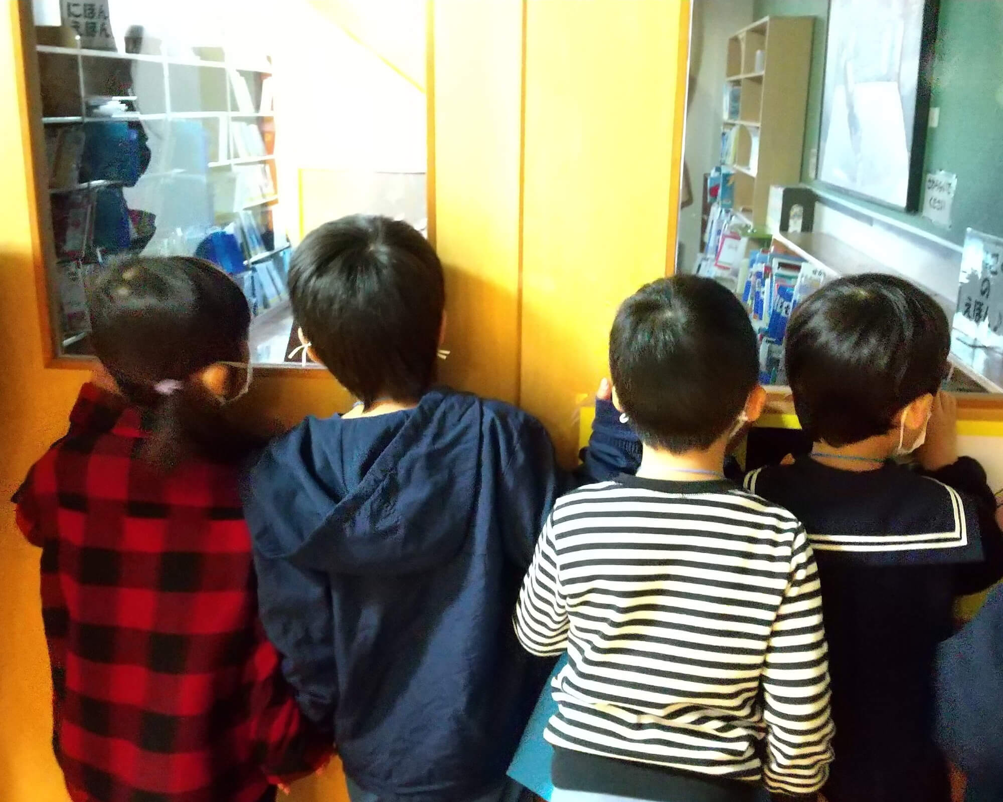 職員室、図書室、保健室など様々な教室を見て回りました。時間の都合で中に入れなかった教室もありましたが、子どもたちはみんなドアに張り付いて中をのぞき込み、興味津々でした。