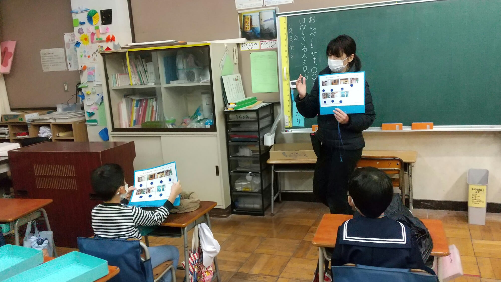 校内には、たくさんの先生や児童がいて、はじめは少し緊張した面持ちだった子どもたちですが、徐々に慣れていき、「ここは何する部屋?」「これは何て書いてあるの?」など、色々と職員に質問する姿が見られるようになりました。移動中も廊下を歩くときの約束を確認したり、すれ違う人に挨拶をしたり、公共の場での振る舞い方や社会性の育ちにつながる良い経験ができました。