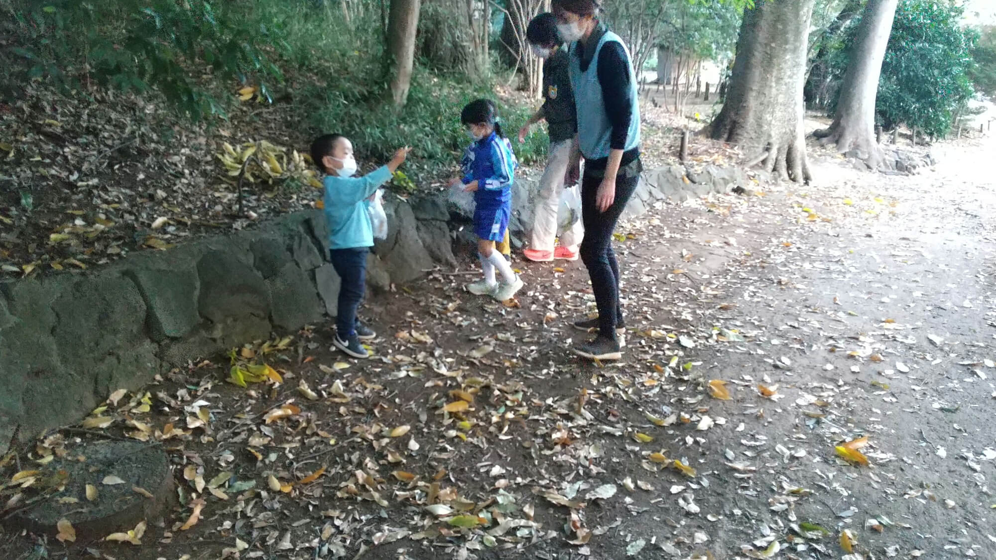 公園に到着し、葉っぱやどんぐりを探し始めるとすぐに子どもたちが「こっちにどんぐりいっぱいあるー!」「こんな小さい葉っぱがあったよ」と口々に発見したものを教えてくれます。