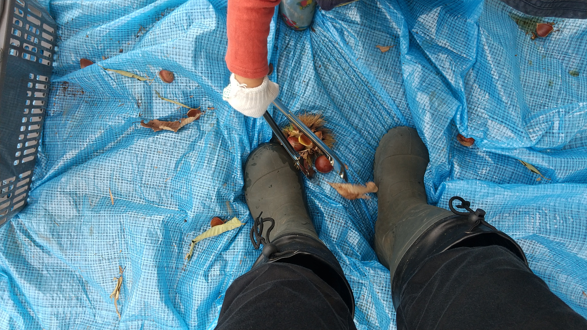 つむぎ吉祥寺ルームでは、どろんこ会グループ内就労支援つむぎ 武蔵野ルームの栗畑で、栗拾いを行いました。最初はホンモノの「いが栗」を見て、「きゃ~、針がいっぱい!」「チクチクしてこわい!」と大騒ぎしていた子どもたちも、その中に栗が入っていると分かると、長靴でいがを踏み、慣れない大きなトングを使って栗を取り出そうと頑張ります。栗は丸くて表面がつるつるしているので、なかなかうまく挟むことができません。