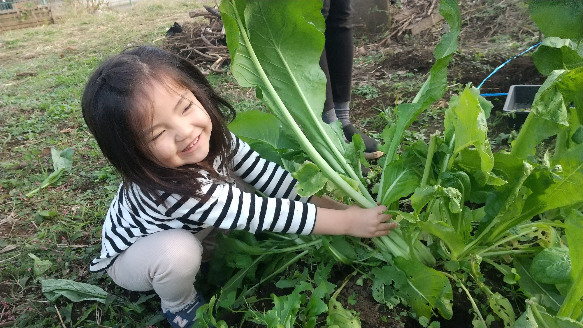 つむぎ 吉祥寺ルームでは、2年前より同じ法人内の武蔵野どろんこ保育園(東京都西東京市新町)の畑を借りて畑仕事を定期的に行っています。畑を耕すところから収穫まで、実っていく一連の流れを知っていくのはもちろんのこと、自分たちが育てた野菜を調理し、友だちと食べる経験を積み重ねた子どもたちは、日に日に「食」への関心が高まっています。
