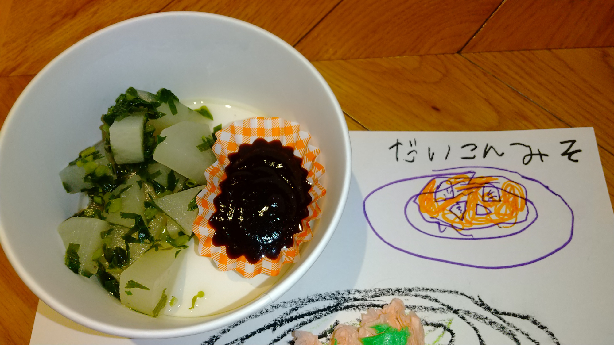 子どもたちが考えたレシピを持っていくと何日か考えてくださり、その中から小鉢の一品に選んでいただけました。