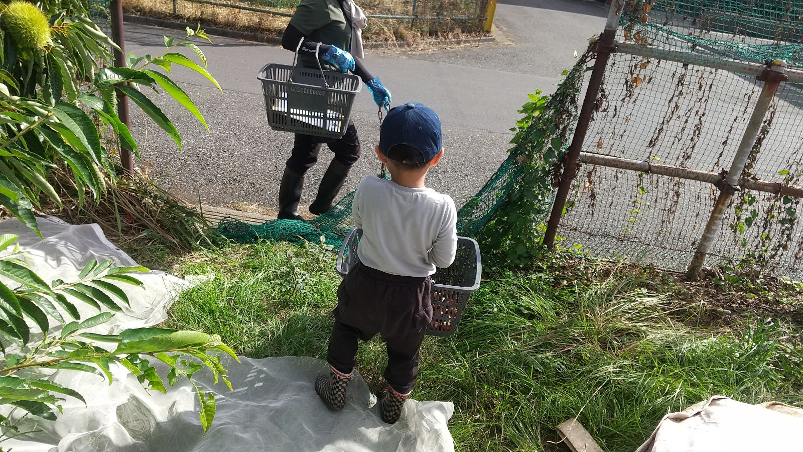 一つのことに集中して取り組める時間が短いお子さんも、夢中になって落ちている栗を探し、ひとつでも多くの栗を収穫しようと頑張る姿がよく見られました。収穫し終えた後は、拾った分だけ重くなった籠を自力で持ち、保存場所までその姿勢を維持し運び続けることができました。