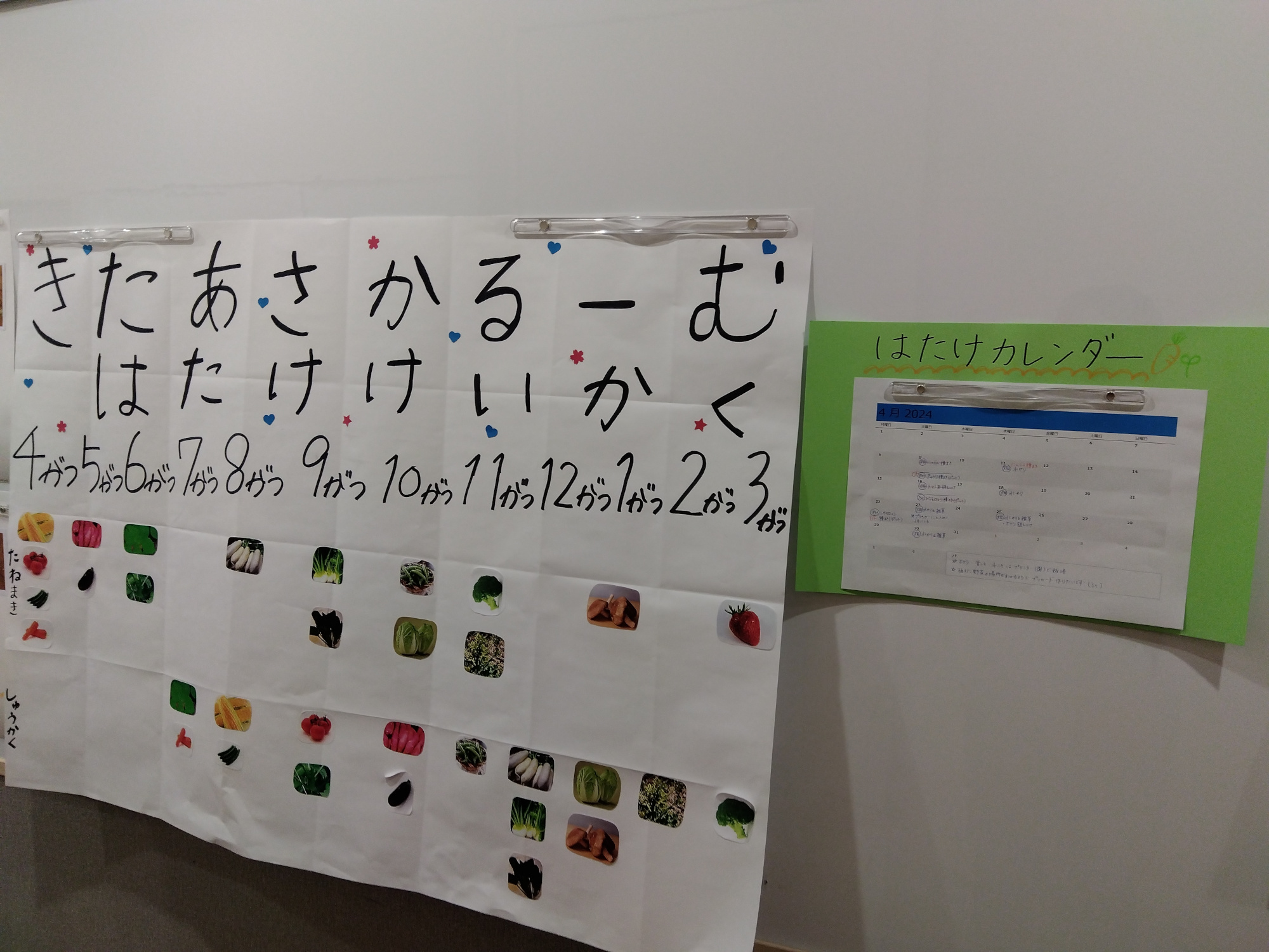 今回はスタッフの「やってみたい」のひとつである畑についてお伝えしていきたいと思います。今年度は前年度以上に畑仕事に力を入れ、豊年満作を目指したいという思いからどの時期に何を植えるのか計画表やカレンダー表を作成しました。