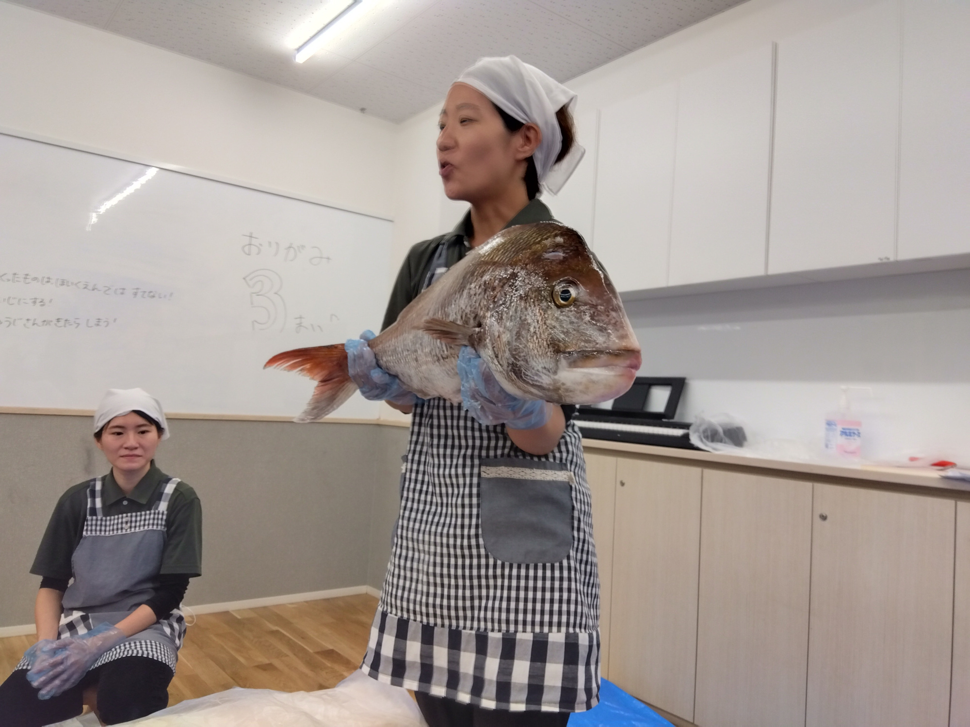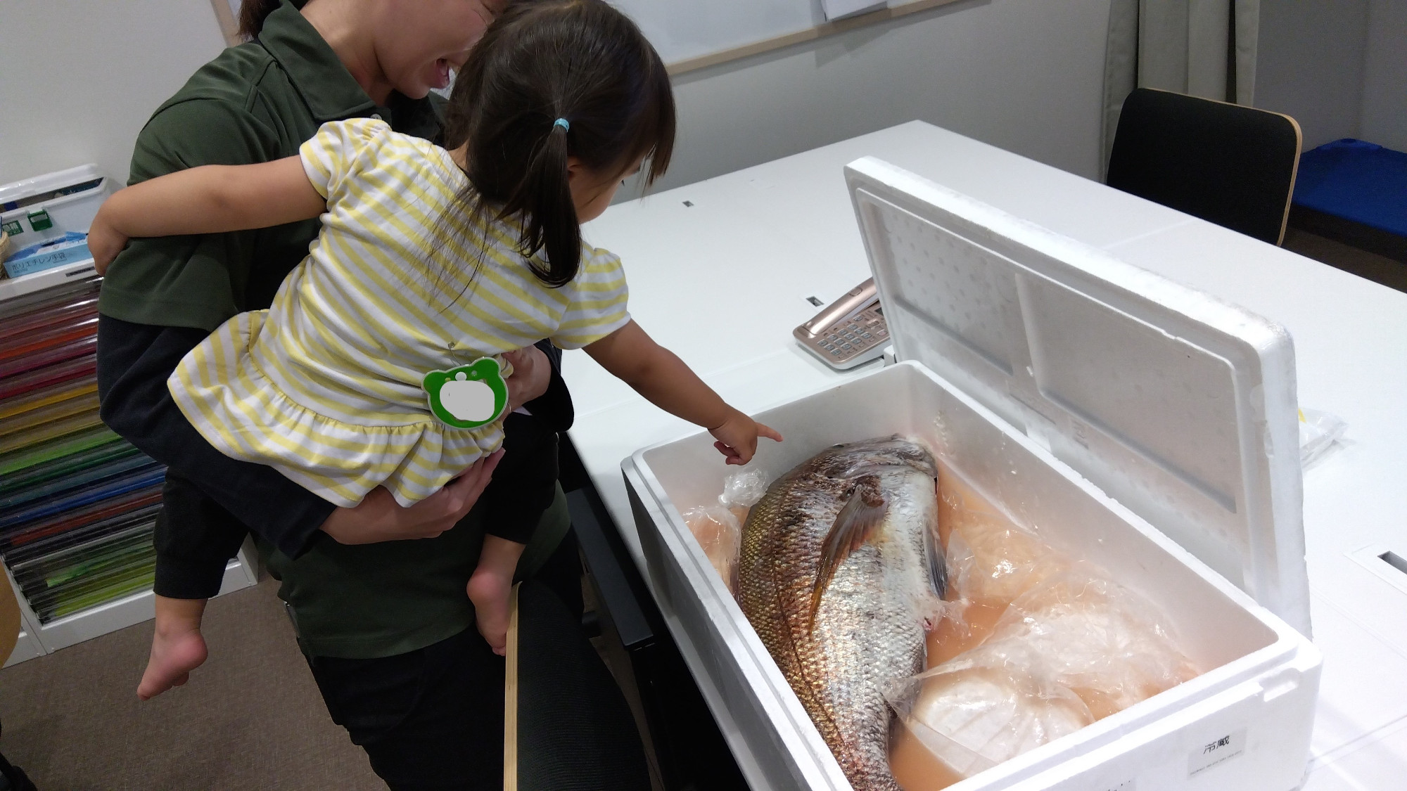 5月の連休が明け、施設に一匹の大きな魚が届きました。法人の代表が海で釣り上げた真鯛です。子どもたちにぜひ「本物の体験を」と届けてくれました。
