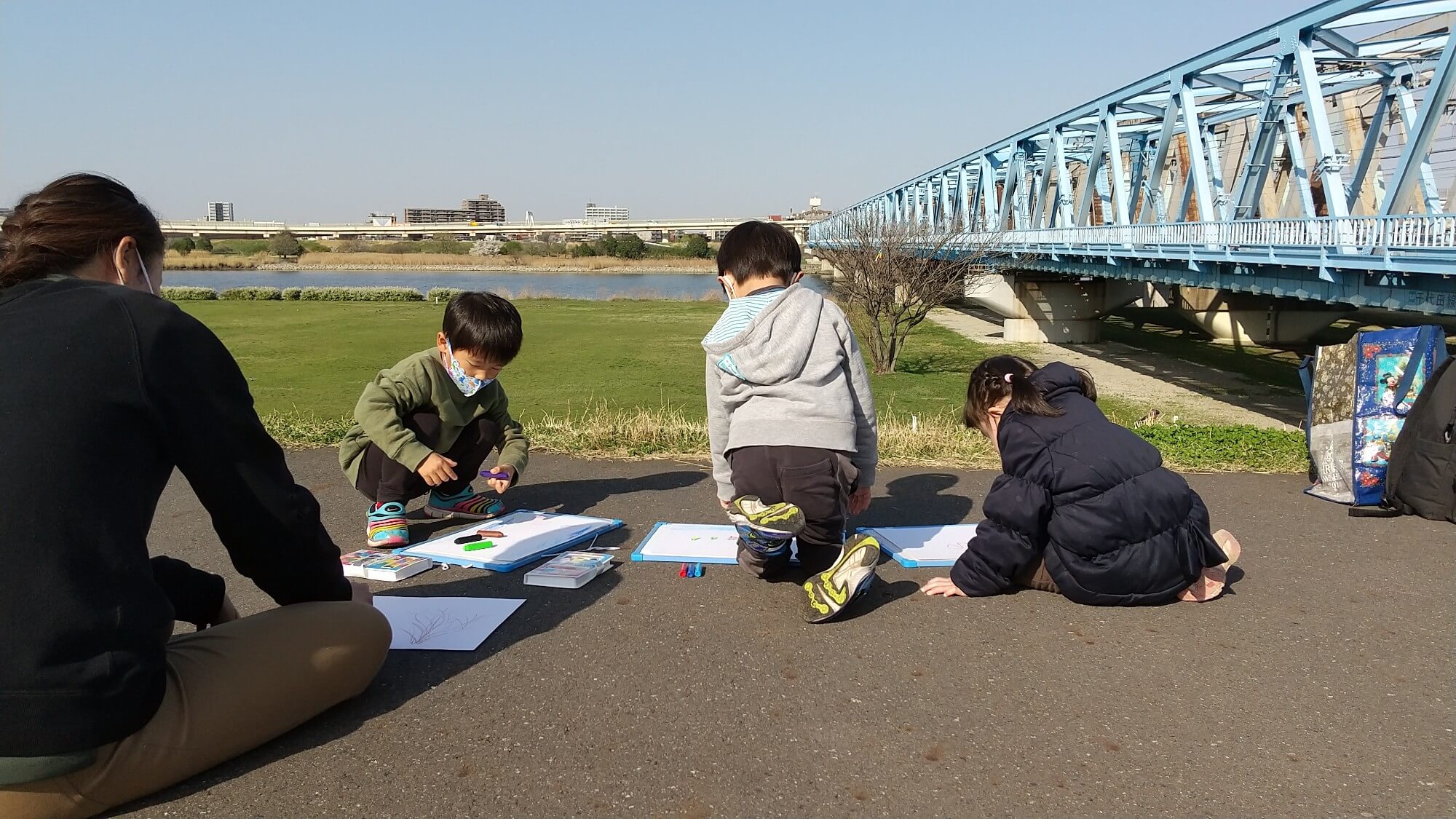 こんにちは。発達支援つむぎ 北千住ルームです。つむぎ北千住ルームは、北千住駅から歩いて10分ほどの場所にある「北千住どろんこ保育園」と併設しており、思いっきりどろ遊びができる園庭があります。また、5分ほど歩けば荒川の土手へ行くことができ、開放感溢れる自然が広がっています。そんな自然環境に恵まれているつむぎ北千住ルームでは、室内での活動だけでなく、戸外活動を積極的に取り入れています。