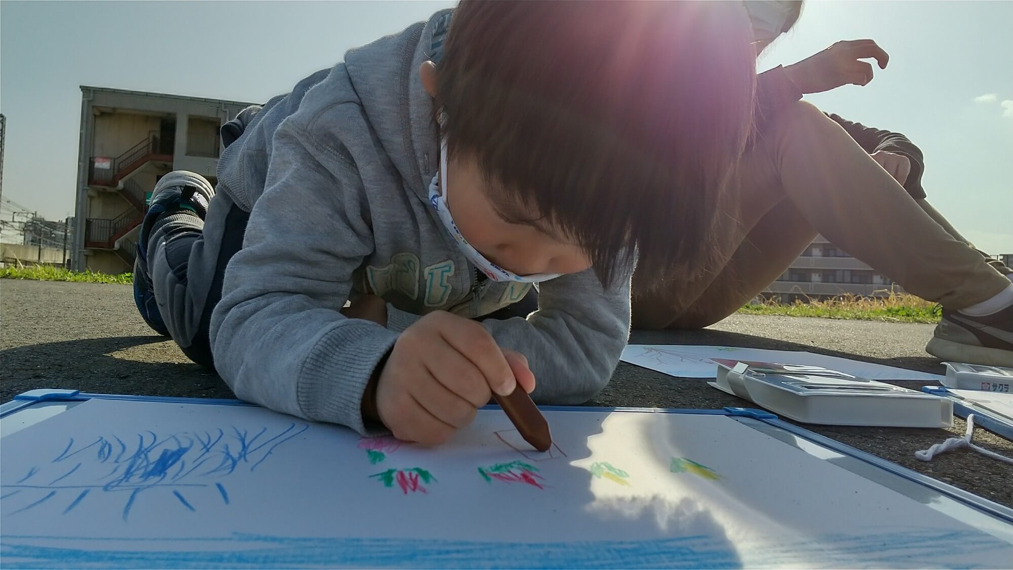 いつもは手際よく早めに活動を終わらせるAくんですが、大好きな土手での遊びをやめてまで絵を描き続けます。