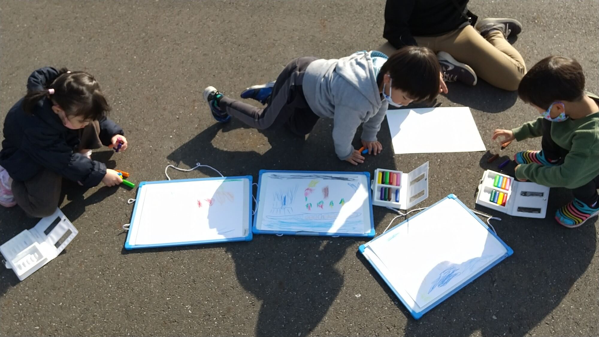 大人だったら目の前の風景を描いてくださいと言われたら、本当に目の前にあるものしか描けないかもしれませんね。想像力豊かで自由な子どもたちの絵の世界を見て、素敵だなと感じました。