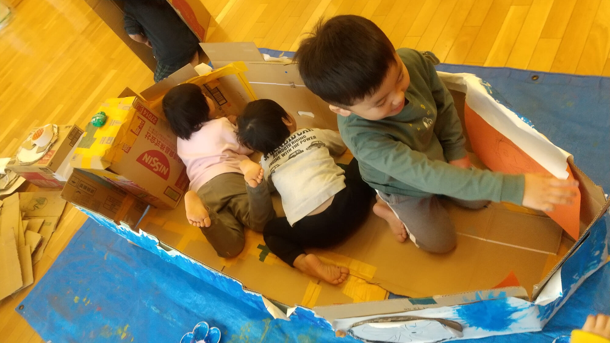 完成後には、友だち と一緒に入り、運転手になりきって遊ぶ姿も見られました。
