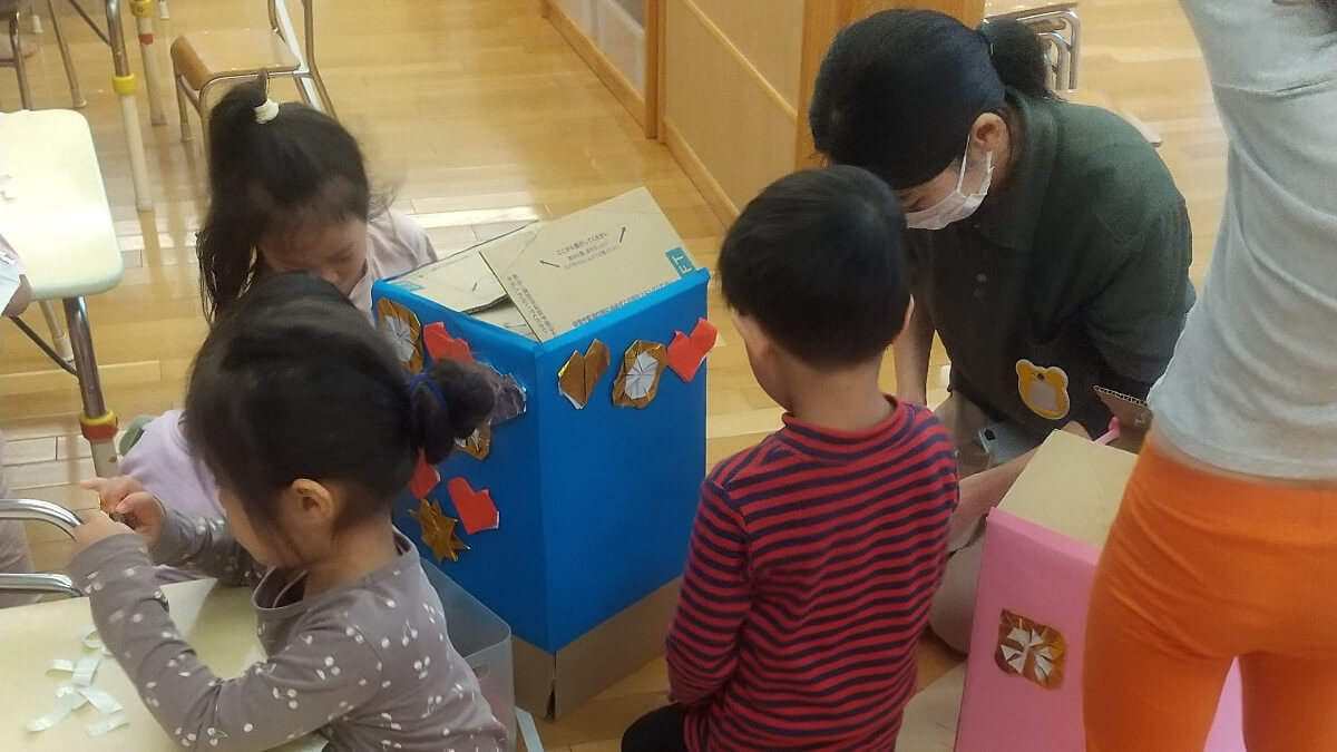 保育園では、運動会に向けて、日々の活動の中に競技を取り入れました。マンスリー支援でも、一緒にダンスや玉入れ、ボール運びなどに参加することで、友だちと協力する意識や達成感を味わうことができました。また準備の一環として、入場門をみんなで作ることになりました。5歳児が主体となり、それぞれ飾りつけを考えながらみんなで作った過程をご紹介します。