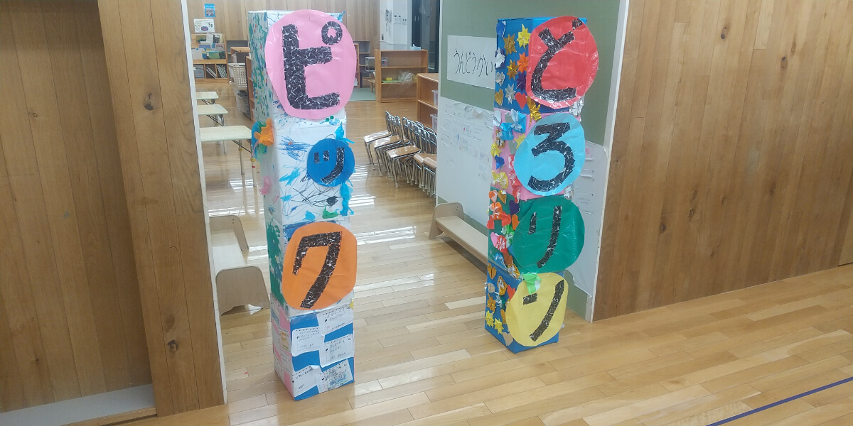 こうして、数日をかけてみんなで協力して入場門を作ることができました。入場門を作る過程を通して、友だちと協力する意識や、いろいろな素材を使って表現する力を育むことができたと思います。