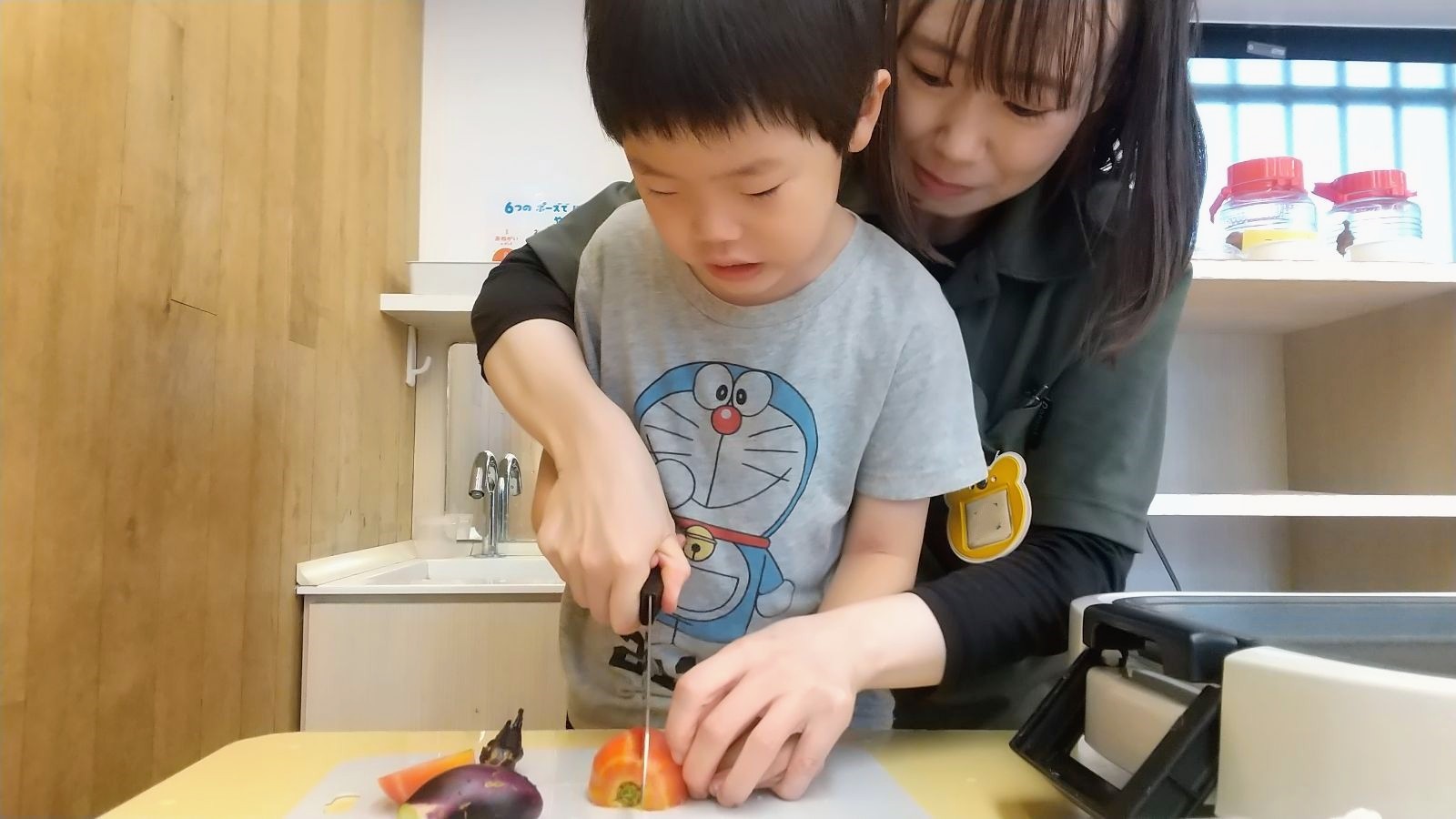 できあがった野菜を食べてみると、「おいしい」「おかわりちょうだい」と満足そうな子どもたち。野菜が苦手な子も、自分たちで育て、調理した野菜に興味を持ち、ひと口挑戦することができました。