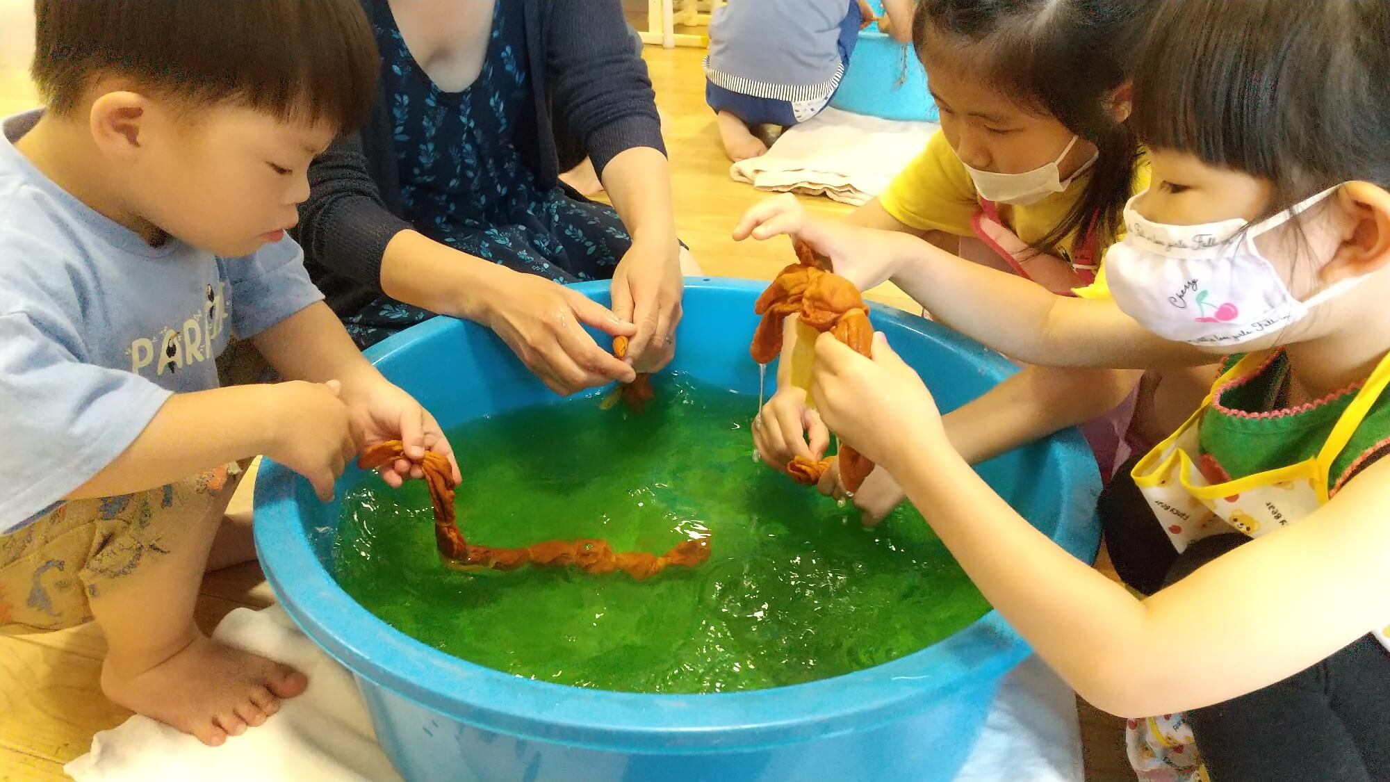 発達支援つむぎ 駒沢 6月体験学習「玉ねぎの皮でハンカチを染めよう」