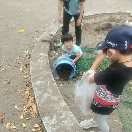 まず、今回使用するジュースやかき氷のシロップを買いに行きました。お父さんお母さん以外とは初めて買い物に行く子、初めて小銭で支払いをする子、みんな友だちのためにと暑い中、頑張りました。