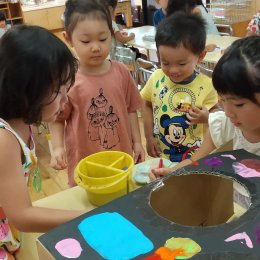 活動を戸外で行うことで、室内ではできないダイナミックな遊びや、季節の自然物や水たまりなどを通してじっくり遊びに取り組むことができます。これから寒い季節に突入しますが、季節の移り変わりを感じながら、これからも戸外を中心に活動を行っていきます。