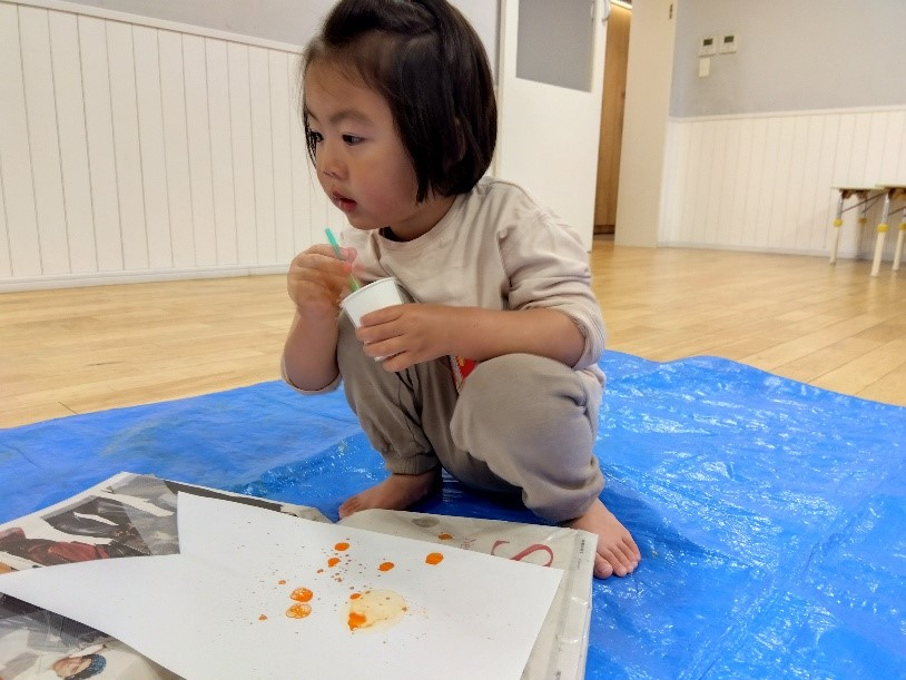 自分で色を選び、思い思いに模様付けしていきます。初めは自分が好きな色だけを選んでいた子も、隣で友達が他の色を使っているのを見て、自分もその色を取り入れてみるなど、友達との関わりの中で自分の発想を発展させていく様子が見られました。それぞれの思いがこもったこいのぼりは、併設されている「つむぎカフェ」に飾りました。今後も季節に合わせて様々な作品を作って飾っていく予定なので、つむぎにお立ち寄りの際には、ぜひご覧いただけたらと思います。