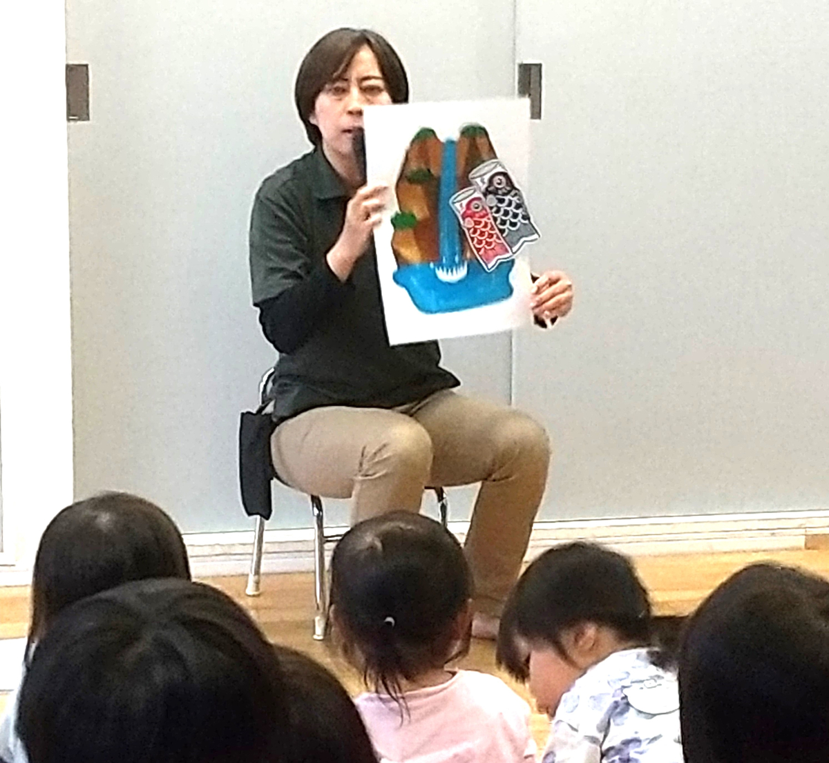 特に鯉の滝登りの話は興味津々といった様子で聞き入っており、これからはまた違った目でこいのぼりを見てもらえるのでは、と感じました。このミニ行事は、保育園とつむぎのスタッフとで一緒に企画したものです。今後も、つむぎの子も保育園の子も一緒に楽しめるようなことをどんどん考えていきたいと思います。
