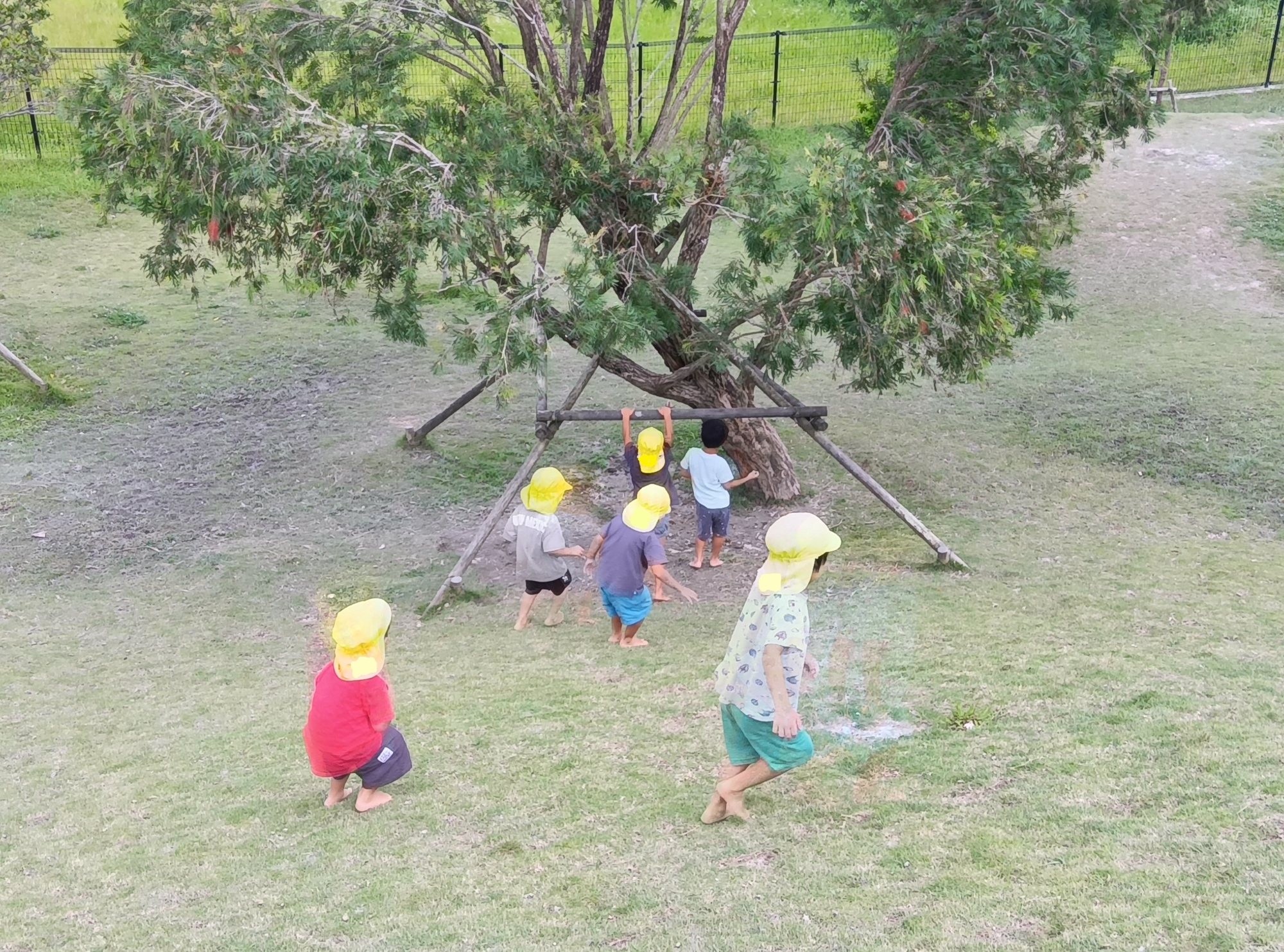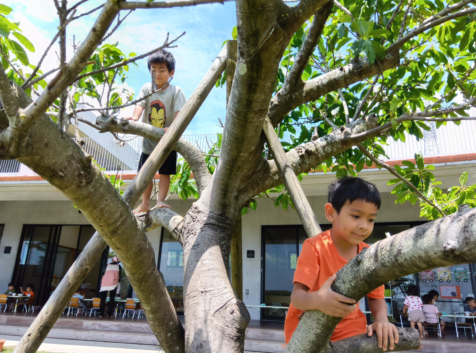 晴れた日は「絶好のチャンス!」とばかりに園庭へ駆け出し木登りを始めました。次はいつ太陽が顔を出すのかわからないこの時期、めったにない園庭遊びでは子どもたちが笑顔で遊び、自然に触れ、感じたことを体で表現し友達や保育者と共感して楽しんでいます。