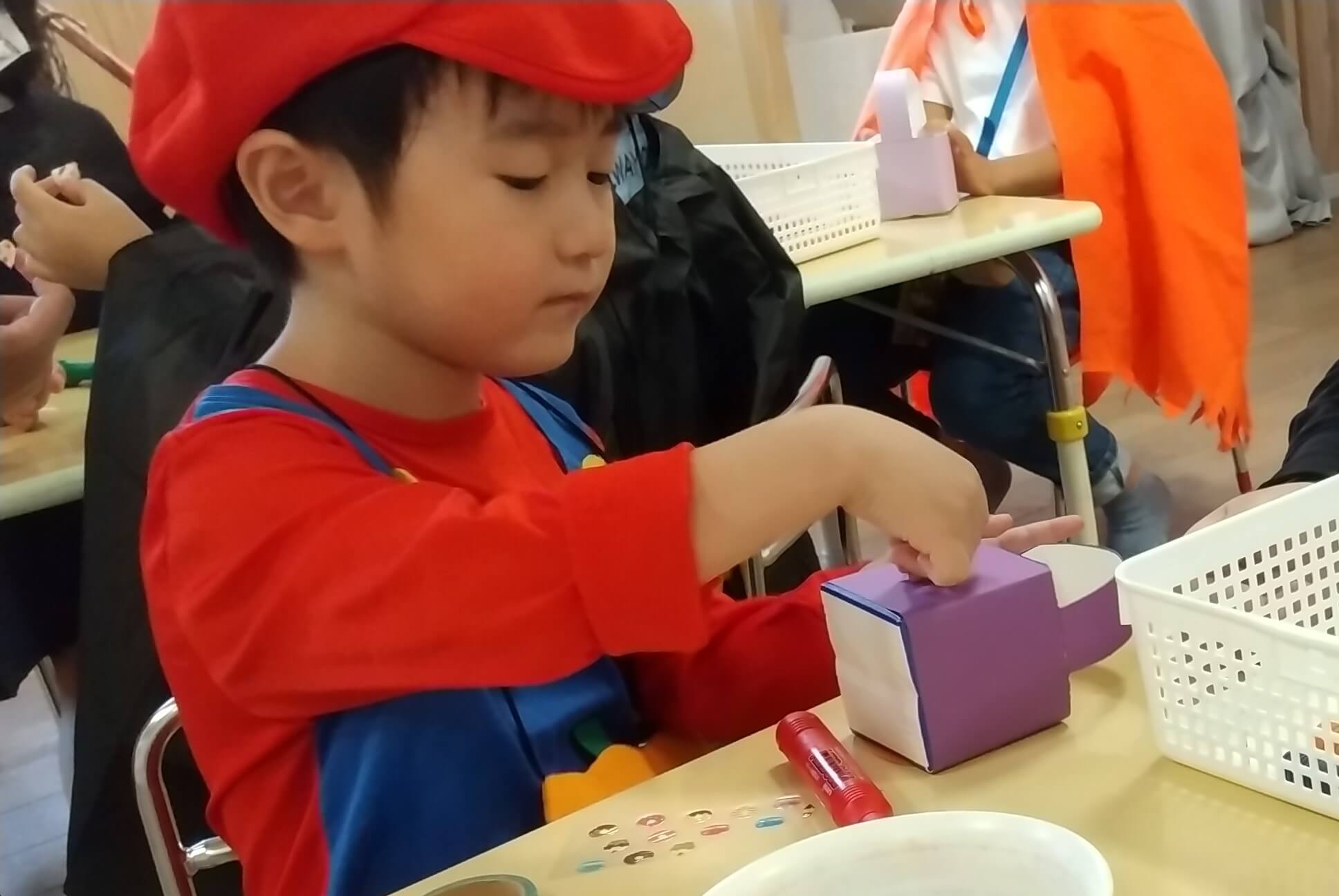 顔を描いたり、シールを貼ったり。大事な「アレ」を入れるためにかぼちゃのかごを作ったら出発です。