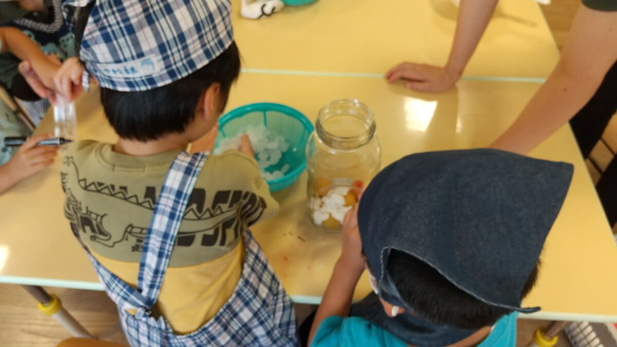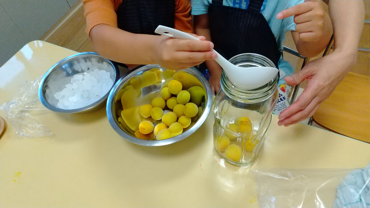 最初は、どのくらい梅や氷砂糖を入れていいのか悩んでいた子どもたちも、繰り返していくうちにコツをつかんでいきます。