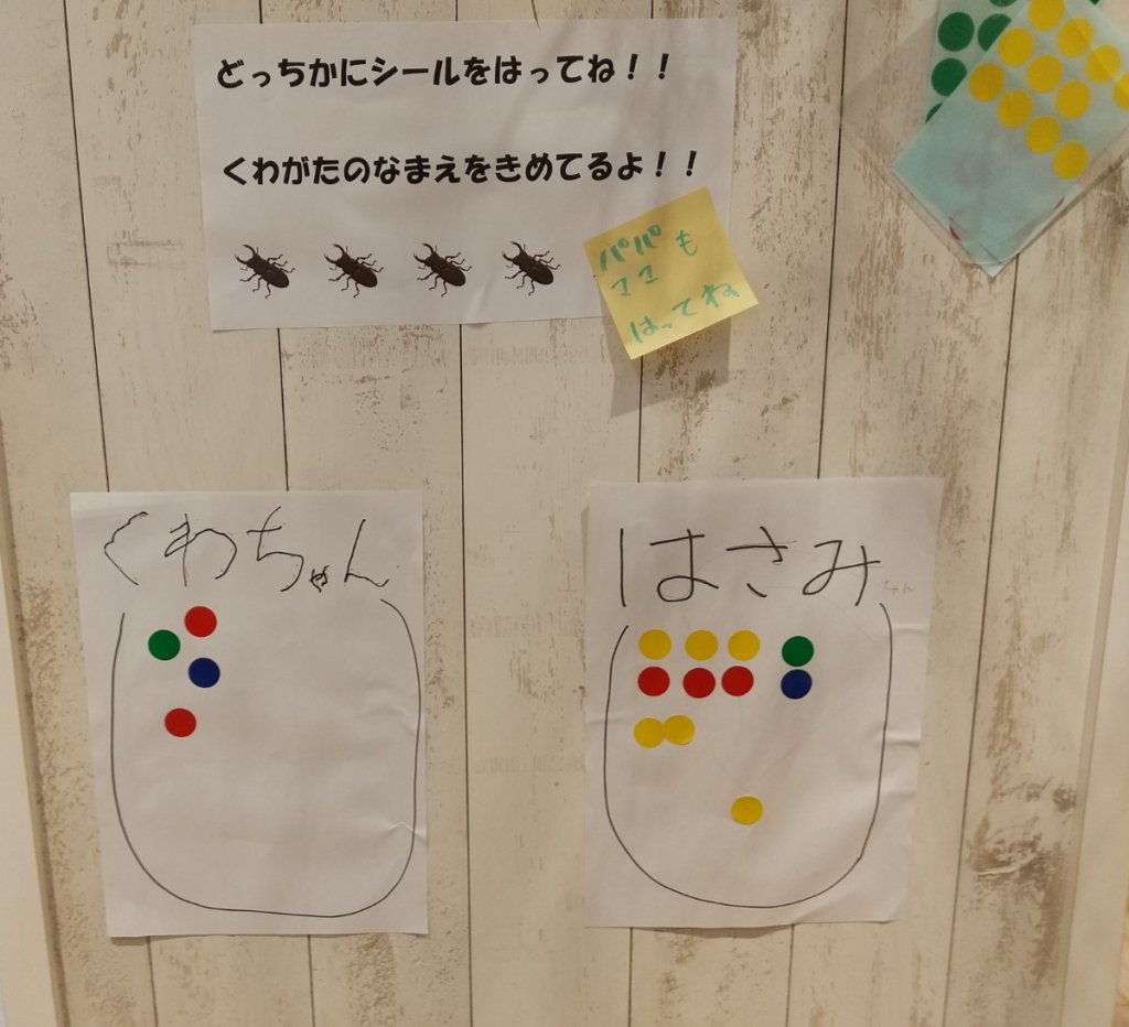 ちなみに、クワガタムシの名前はまだ決まっていません。子どもたちが候補を挙げ、アンケートを取っています。どんな名前になるのか楽しみです。