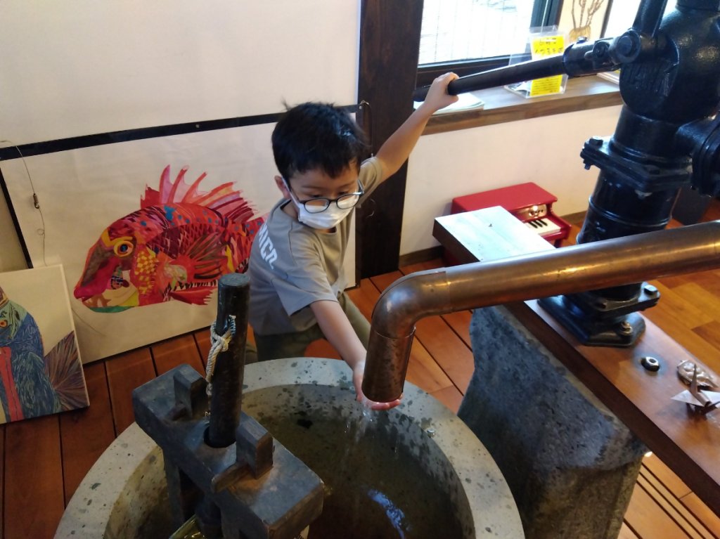近隣の駅に集合し、徒歩でお寺まで向かいます。暑い中、初めての道にドキドキしながら20分かけて歩きました。途中疲れてしまうこともありましたが、休憩しながら歩ききりました。また、歩いていく途中にたくさんのお墓を見つけ興味津々。「お墓ってなに?」と質問したり、スタッフや保護者の方の説明を聞いたりしながら歩きました。 お寺についたら住職にあいさつをして、控室でスタッフの話を聞きます。準備ができるまでの間、控室の中にある井戸を発見しました。井戸を初めてみる子どもたち。井戸から水を出しながらその様子にも興味津々でした。