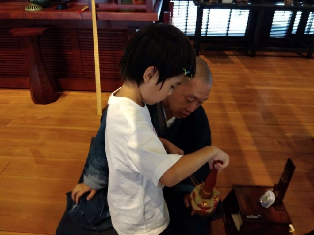 今回のお寺で座禅体験は初めてのこと尽くしで、子どもたちは終始ドキドキしながら過ごしました。それでも初めての体験に興味津々、目を輝かせていました。保護者の方からも「今度は家族と一緒に経験してみたい。」「自分の子どもがこんなに座っていられるとは思いませんでした。」などのご感想もいただきました。