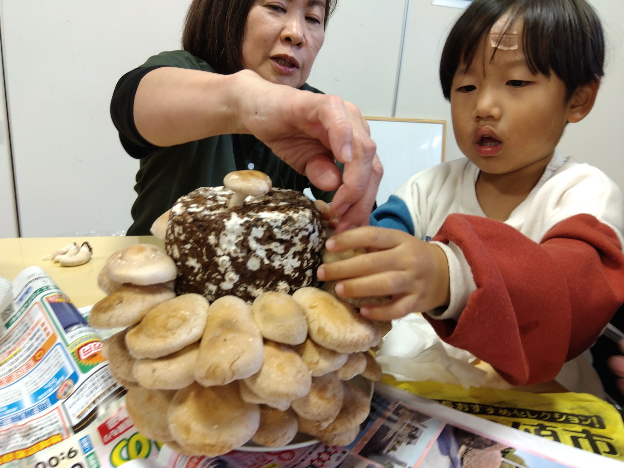 つむぎを訪れるたびに子どもたちはしいたけを見て、「何かある」「ここにあるよ」と成長を観察していました。