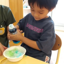 自分で食べられる分のご飯をラップ上によそい、真ん中に梅干しをスプーンですくって置き、握ります。各グループの子どもたちは、自主的に取り組み、思い思いの形に握っていました。待ちきれず、梅干しを入れずに握ってしまった子もいました。