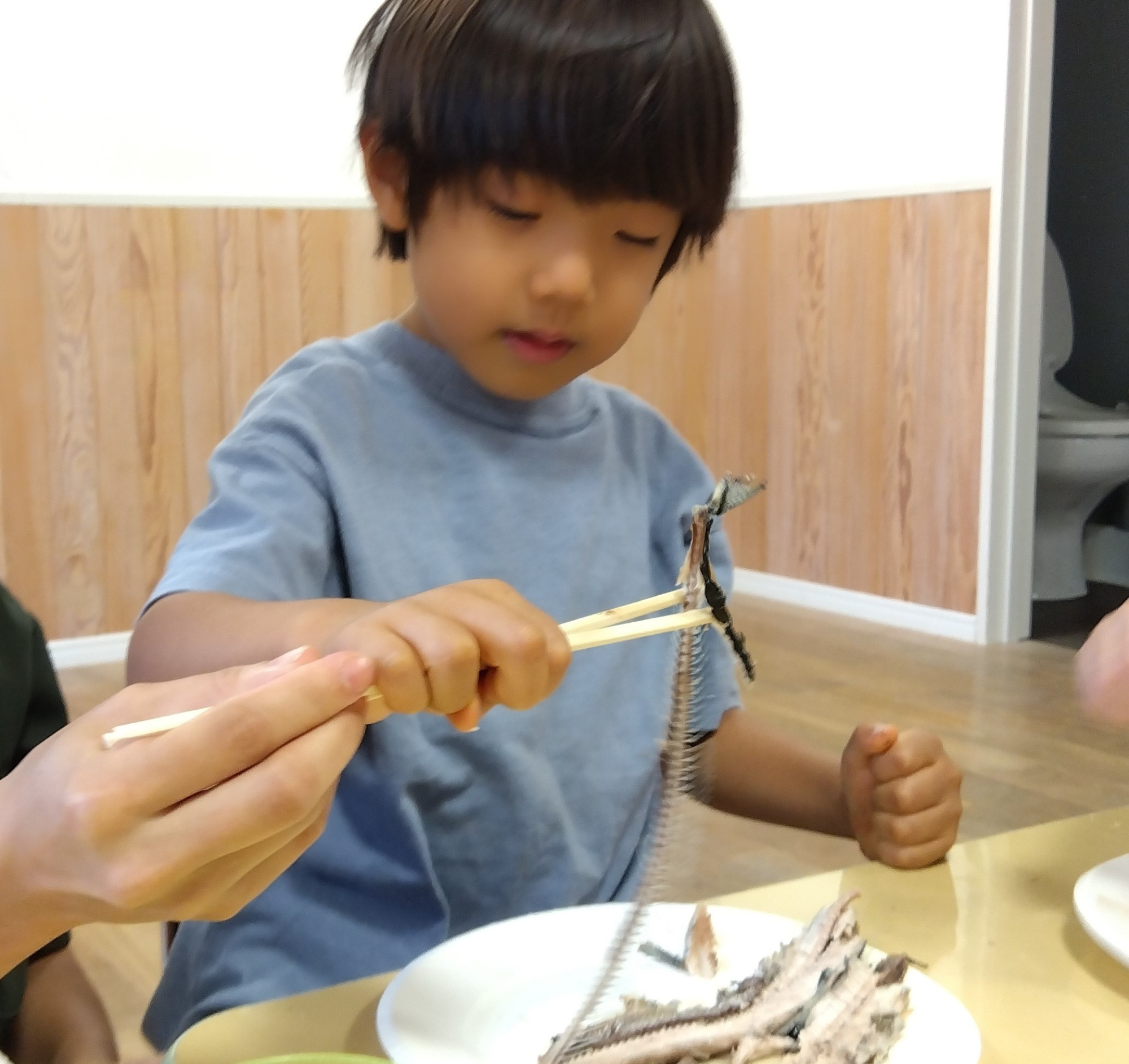 魚が好きな子は小骨まで食べたり、普段使わない箸を使ってみたり、魚嫌いと話していた子が自発的に食べてみたりするなどの様子が見られました。