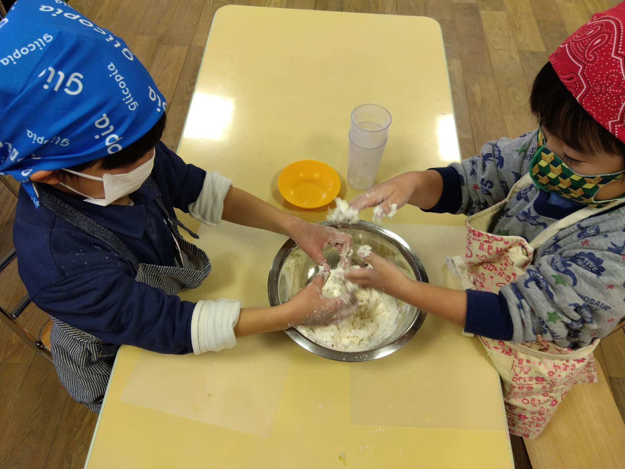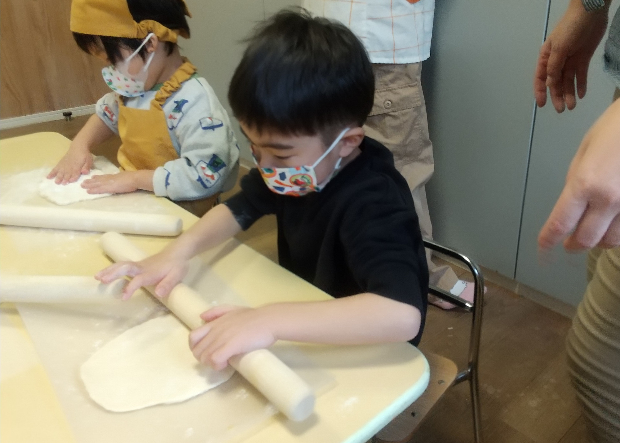 生地を伸ばす子どもたち