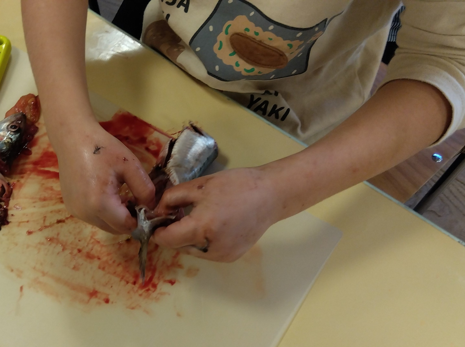 発達支援つむぎ 目白「魚をさばいて、干物にしてみました」