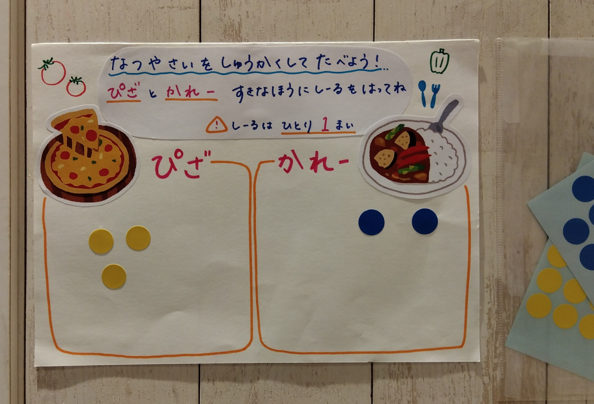 今年度もつむぎ畑での野菜づくりが始まりました。子どもたちと種をまく野菜を考え、「できた野菜はどんなお料理で食べようか?」など話し合いをしました。つむぎ 目白ルームのテラスに植えた野菜は、ブロッコリー、なす、ピーマン、きゅうり、トマトです。これらの野菜を使って、ピザ、カレーで食べたい意見が多かったので、アンケートを取っています。結果はどちらになるのか楽しみです。