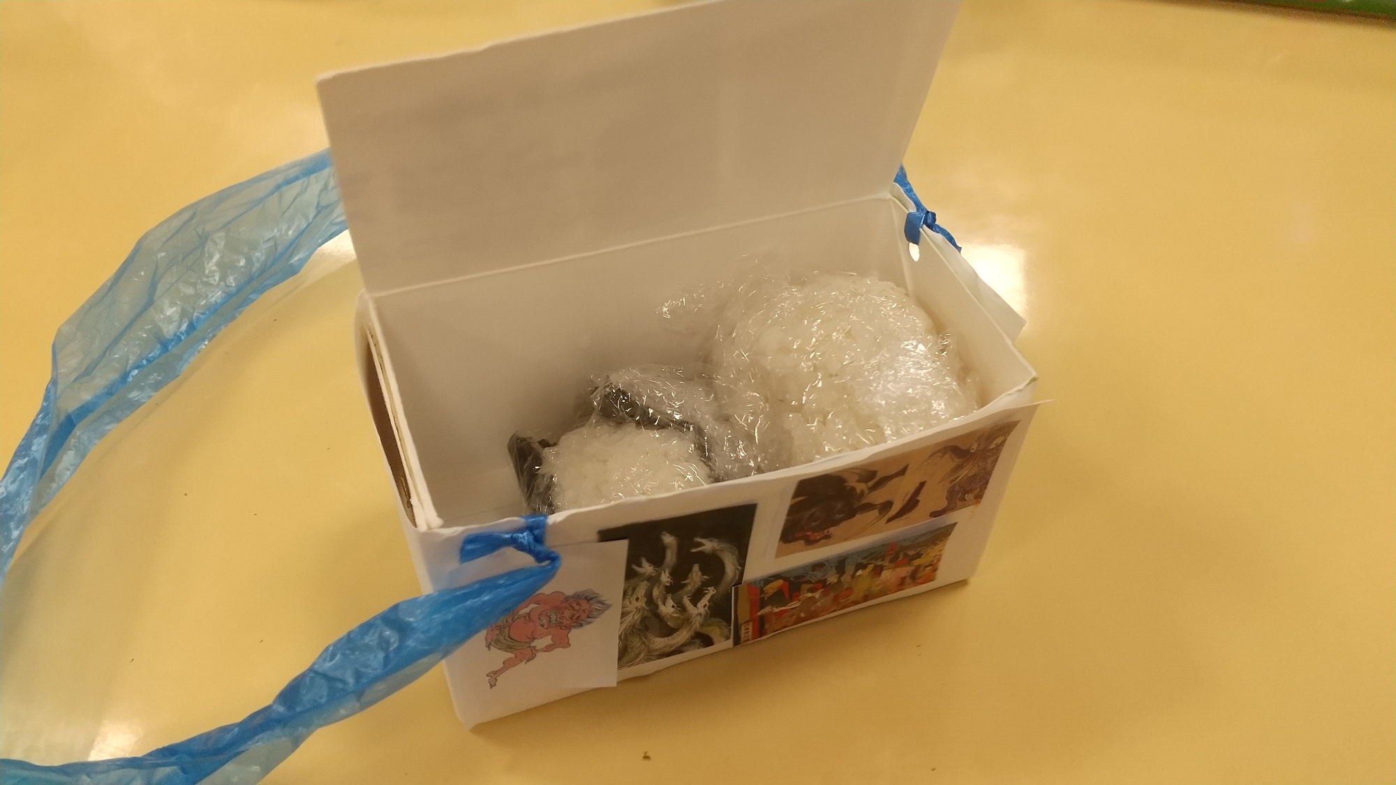次に、おにぎり作りです。普段よく見るおにぎりですが、初めて作る子がとても多くいました。