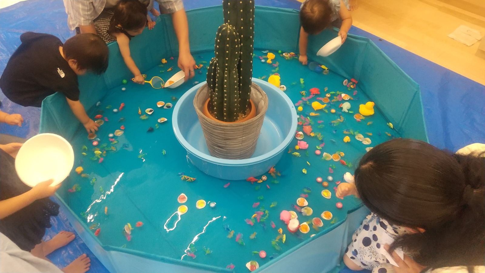 コーナーはくじ引きやおもちゃすくい、花の種まき、絵の具やシールを貼って花火の作品作り、写真の撮影スポットの5つがあり、どのコーナーも沢山の人で賑わいました。