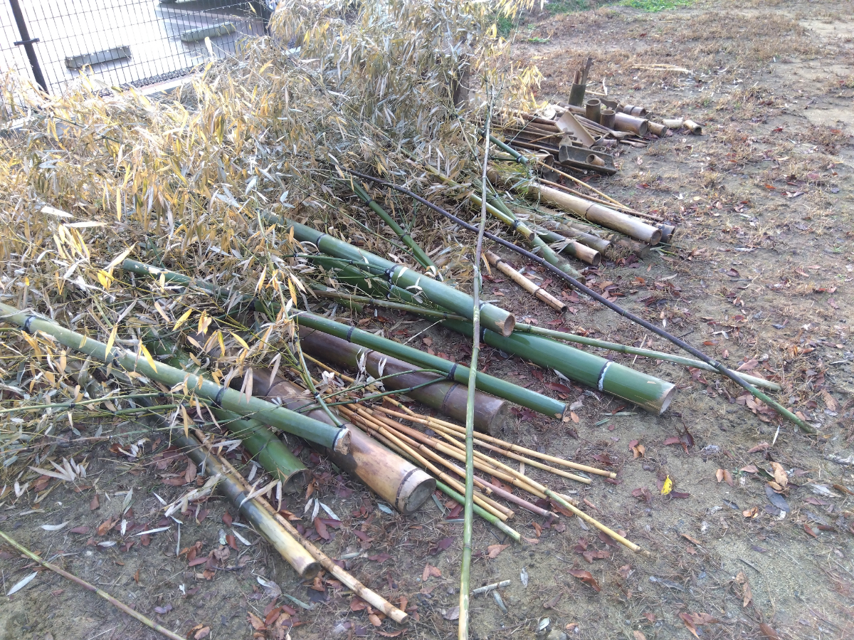 今回は継続して遊んできた素材に、太さや長さの違うものや、子どもたちの発達に合わせて遊びが拡がるよう様々な竹を用意し、環境を作りました。