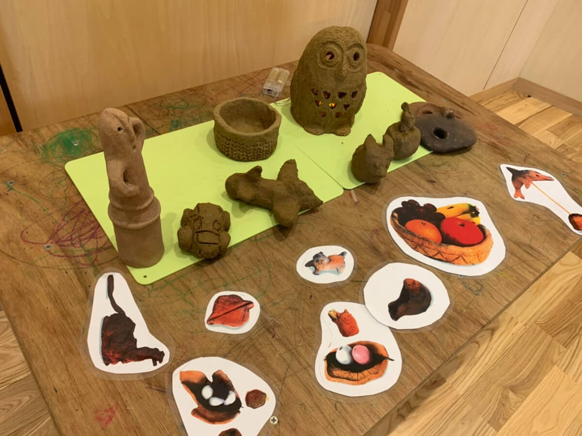 恐竜や飛行機など身近に感じる見本がある中で、子どもたちからは「ハニワ 」が人気でした。また、保護者の方からは器やお香立て、ランプシェードなど実用的な物が人気でした。