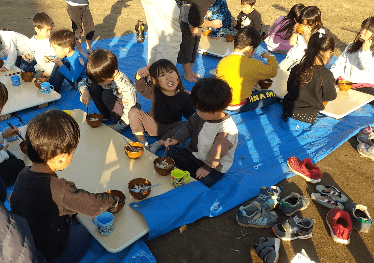 出来上がったうどんを、おやつに食べました。「おいしいね」と笑顔がこぼれ、たくさんおかわりをする姿がありました。自分たちで作ったものを、みんなと一緒に食べることで、食の楽しさや食欲につながることを、実感できる機会となりました。