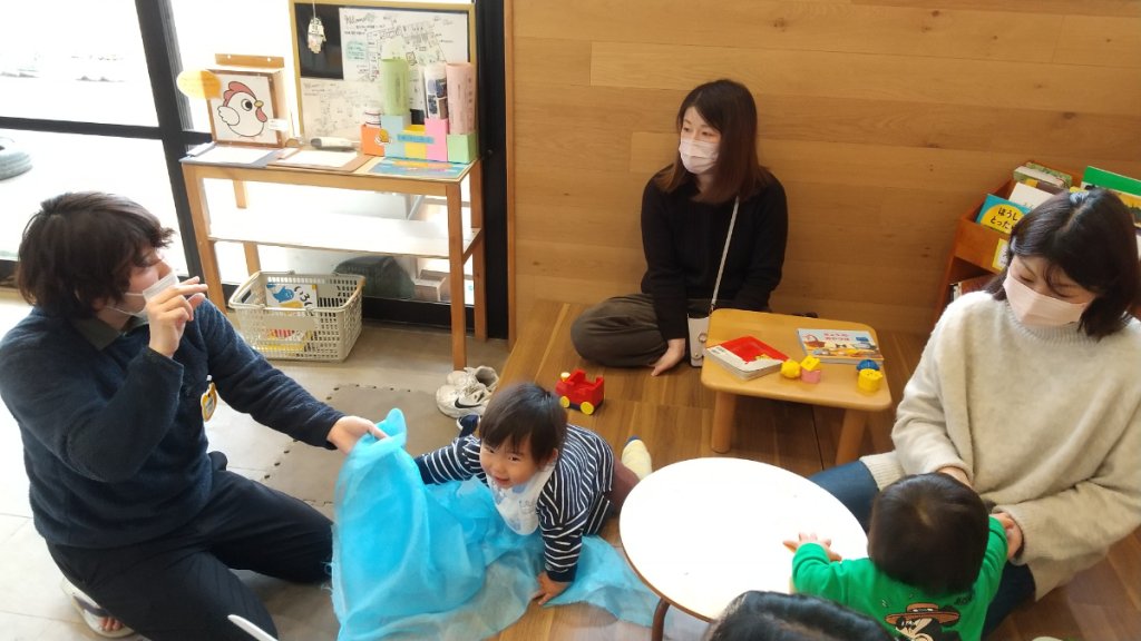 寺親屋では、子ども同士だけでなく、家での遊びやどんな絵本を読んでいるかなど保護者同士の会話が広がりました。