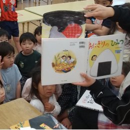 前半は、色・形・数・食べ物・生き物などカテゴリーごとの絵本や、親子で楽しめる仕掛け絵本を実際に用意し、触れながら絵本に親しんでもらいました。また、家で用意できるバスタオルや風船などを使った遊びについて紹介しました。