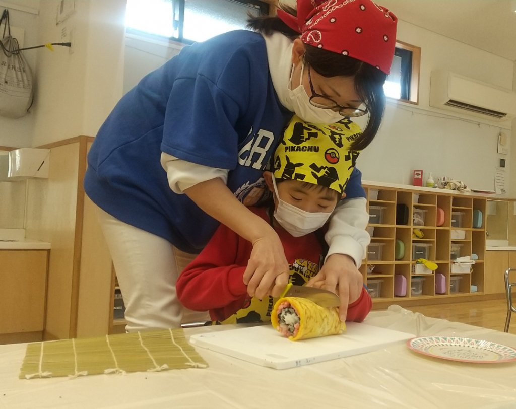 発達支援つむぎ 宮下「華やかな太巻き祭り寿司を親子で作ろう」