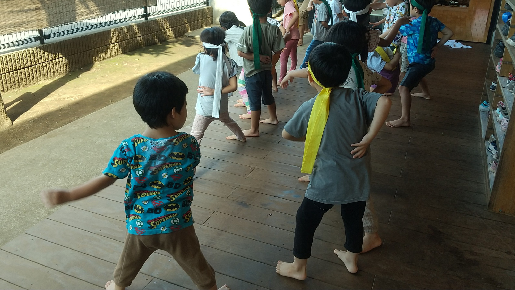 本番は近隣の小学校の体育館で行われました。いつもとは異なる場所、さらに大勢の方が集まっている中、子どもたちはドキドキしたり、ちょっぴり悲しくなってしまったりすることもありましたが、今まで練習した成果を一生懸命披露してくれました。運動会に向けた一連の経験から成長し、逞しくなったように感じます。
