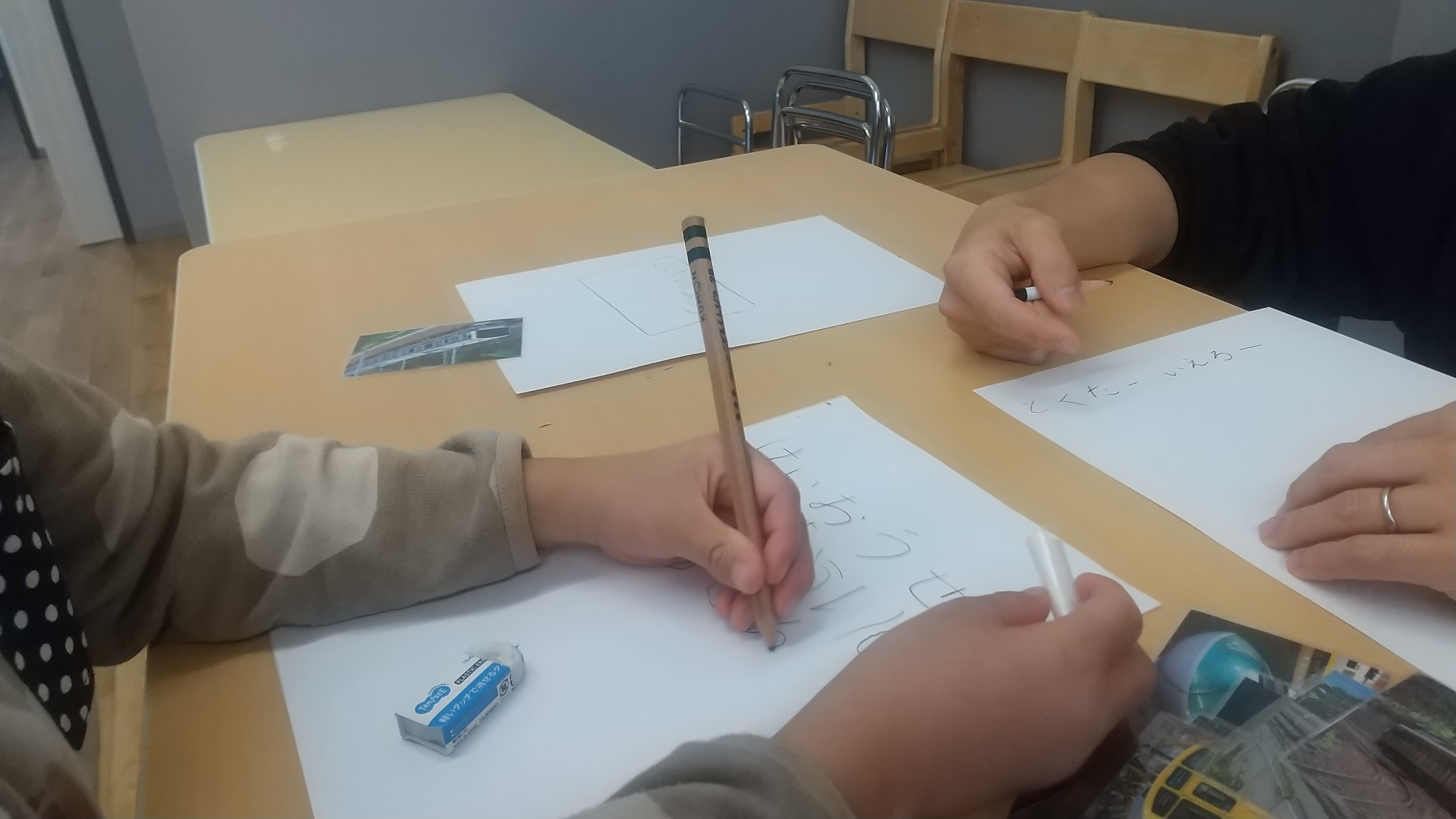 年長のA君「ぼくは、ひらがなが書けないから」とひらがなを書くことに苦手意識があり、自分の名前を書いてほしい時はいつもスタッフにお願いしていました。まずはひらがなを書くことを楽しんでほしいと思ったスタッフは、A君が好きな電車のカードを見ながら名前を書いてみることにしました。ドクターイエロー、はやぶさなど好きな電車の名前が次々と出てきます。最後には京王線とスタッフが書いたら京王井の頭線と自分から言葉をプラスしてひらがなを書くことを楽しんでくれました。