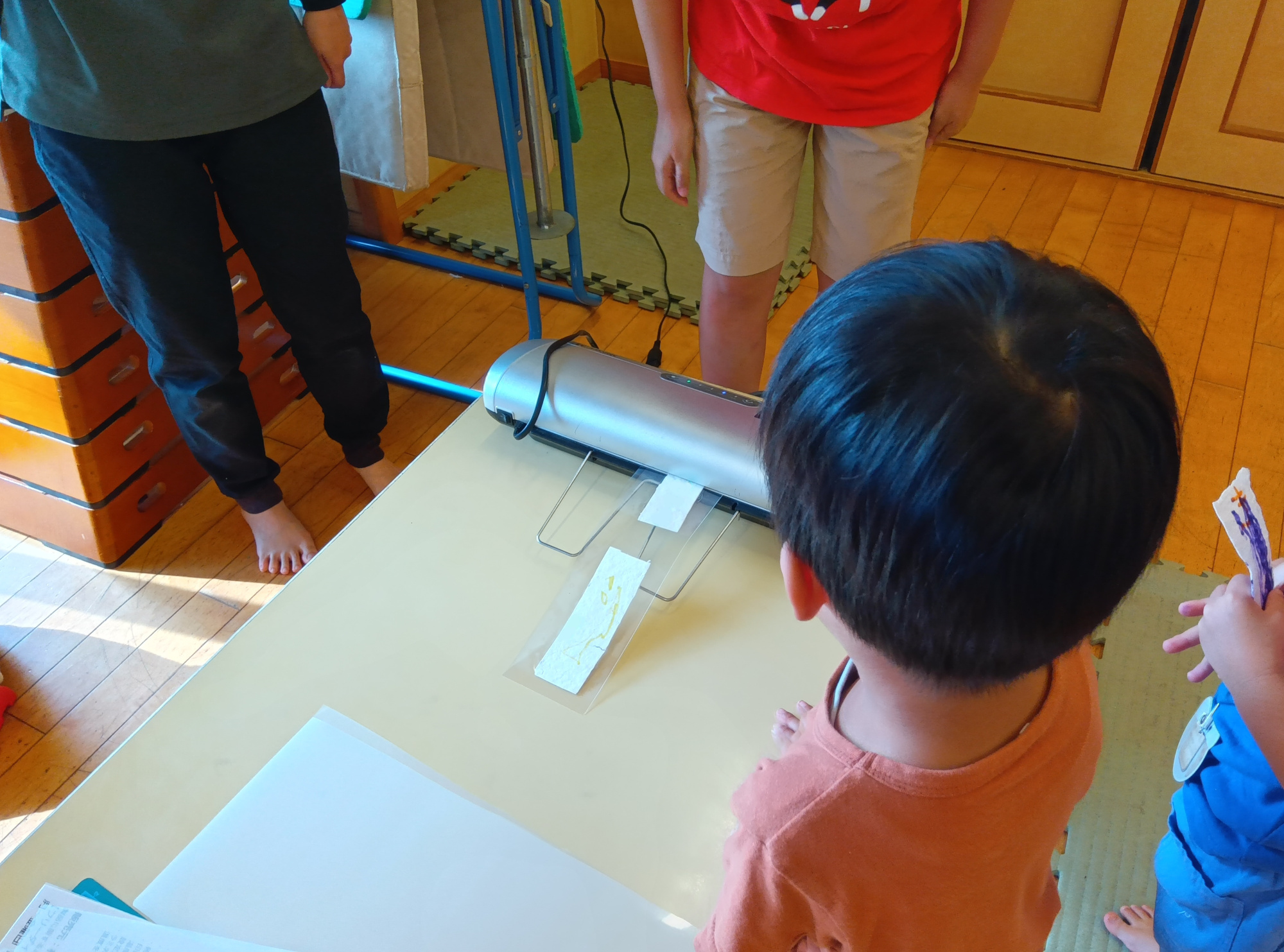 今回は普段の放デイ活動(紙すき)で製作した紙を使って、園児としおり作成を行いました。